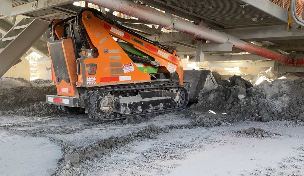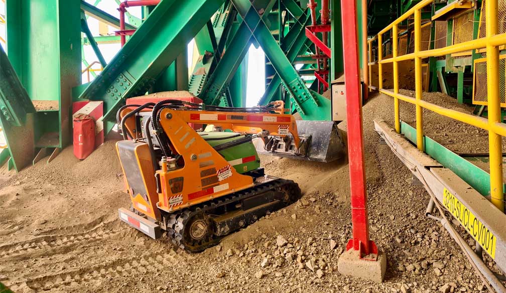 El MP-100 es el cargador compacto mas robusto en su tipo, es un equipo robotizado diseñado para limpieza en instalaciones industriales y faenas mineras, espacios confinados, desatollar pasillos, correas transportadoras, colas de traspaso, túneles, raspado bajo correas, entre otras operaciones.