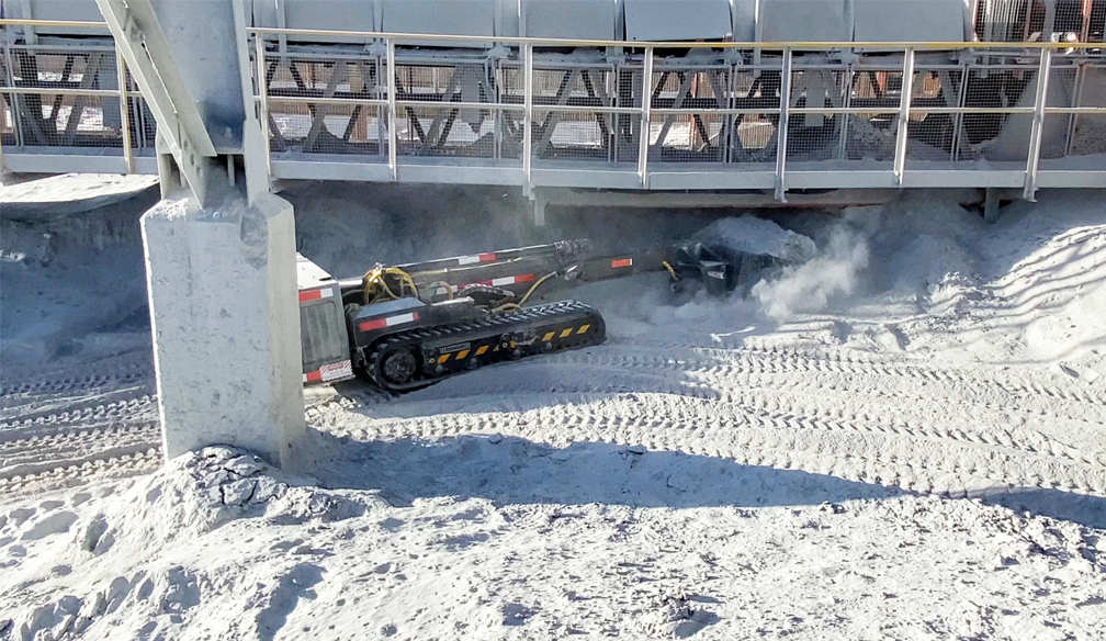 El cargado de bajo perfil es un equipo robotizado, diseñado para limpieza en instalaciones industriales, espacios confinados, desatollar pasillos, limpieza bajo correas transportadoras, colas de traspaso, túneles, desatollo de raspadores, entre otras operaciones.